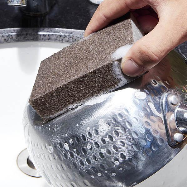 - Efetivamente se livra da ferrugem teimosa, gordura de óleo, manchas de comida e outras sujeiras